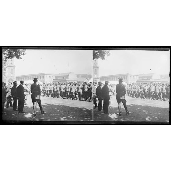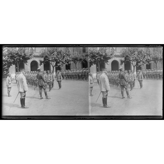 Marseille. Caserne Saint-Charles. Revue des troupes siamoises par le général commandant la 15e région. Les troupes et le général siamois.