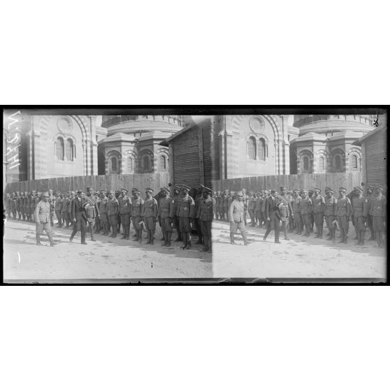 Marseille. Arrivée des troupes siamoises. L'inspection des troupes au cantonnement près de la cathédrale.