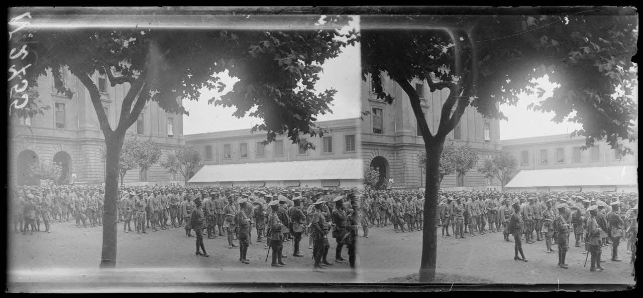 Marseille. Arrivée des troupes siamoises. A la caserne Saint-Charles. Un colonel siamois lit une proclamation aux troupes.