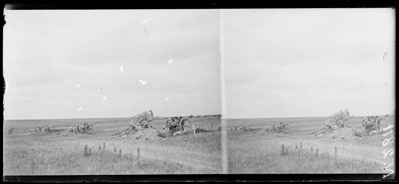 Près Moulin-sous-Touvent (Oise). Batterie de 75 poursuivant l'ennemi de son tir. [légende d'origine]