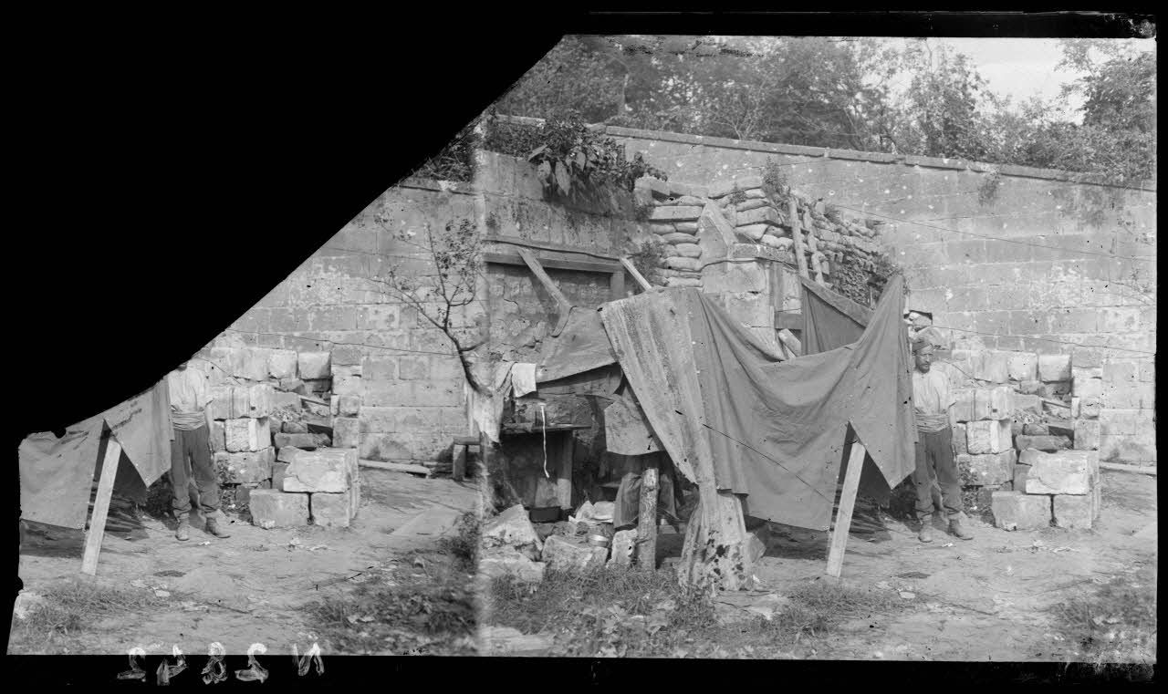Carlepont (Oise). Un abri dans les ruines (30-8-18). [légende d'origine]