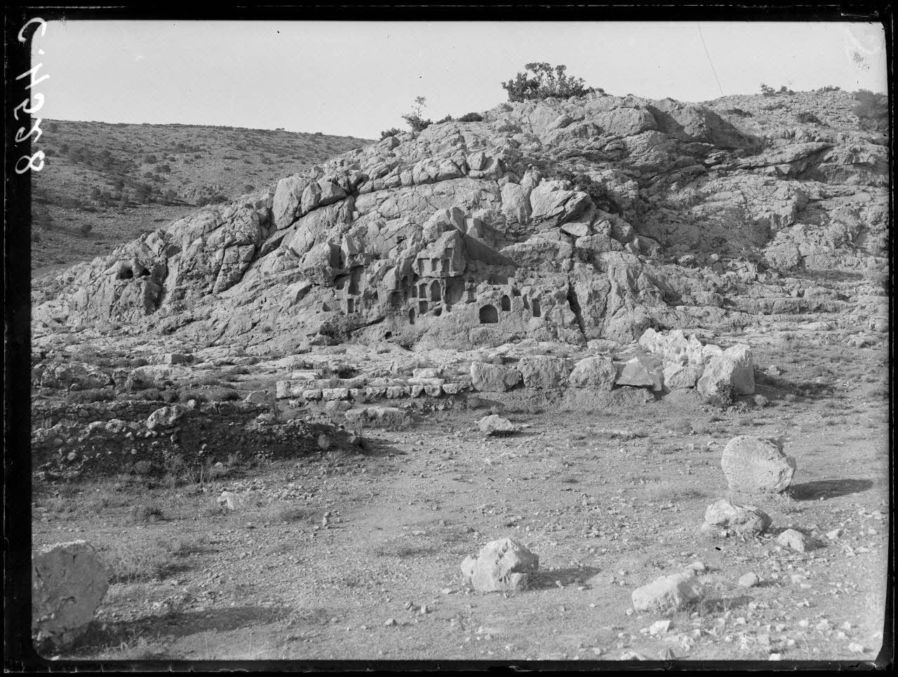 Voie sacrée d'Eleusis. Le sanctuaire d'Aphrodite dans le roc, niches pour statuettes. [légende d'origine]