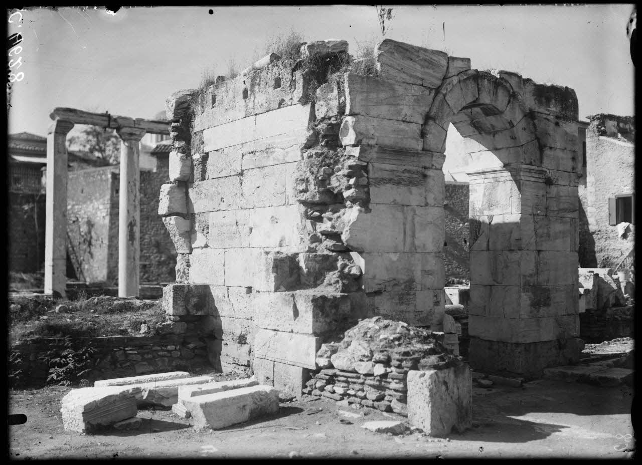 Athènes. La Stoa d'Adrien. Arcade romaine. [légende d'origine]