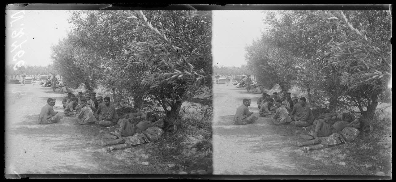 Istres (Bouches-du-Rhône). Au camp d'aviation. Le repos des soldats siamois. [légende d'origine]