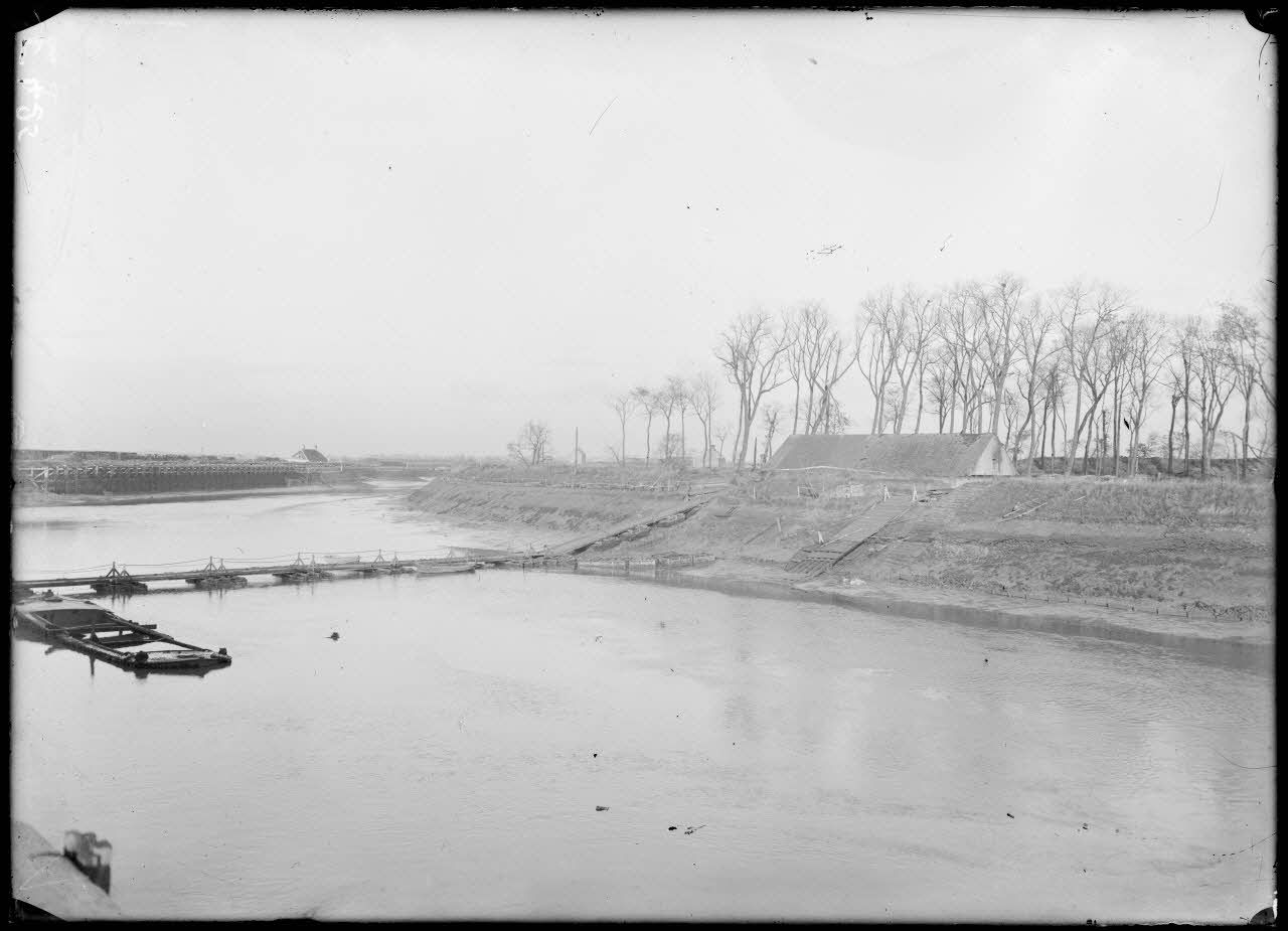 - des vues panoramiques de l'Yser (plaques de verre SPA E 425 à SPA E 431) et notamment de la patte d’oie à l’est de Nieuport, un complexe de canaux d’écluses ayant servi à l’inondation du secteur en 1914 pour stopper l’avancée allemande ;