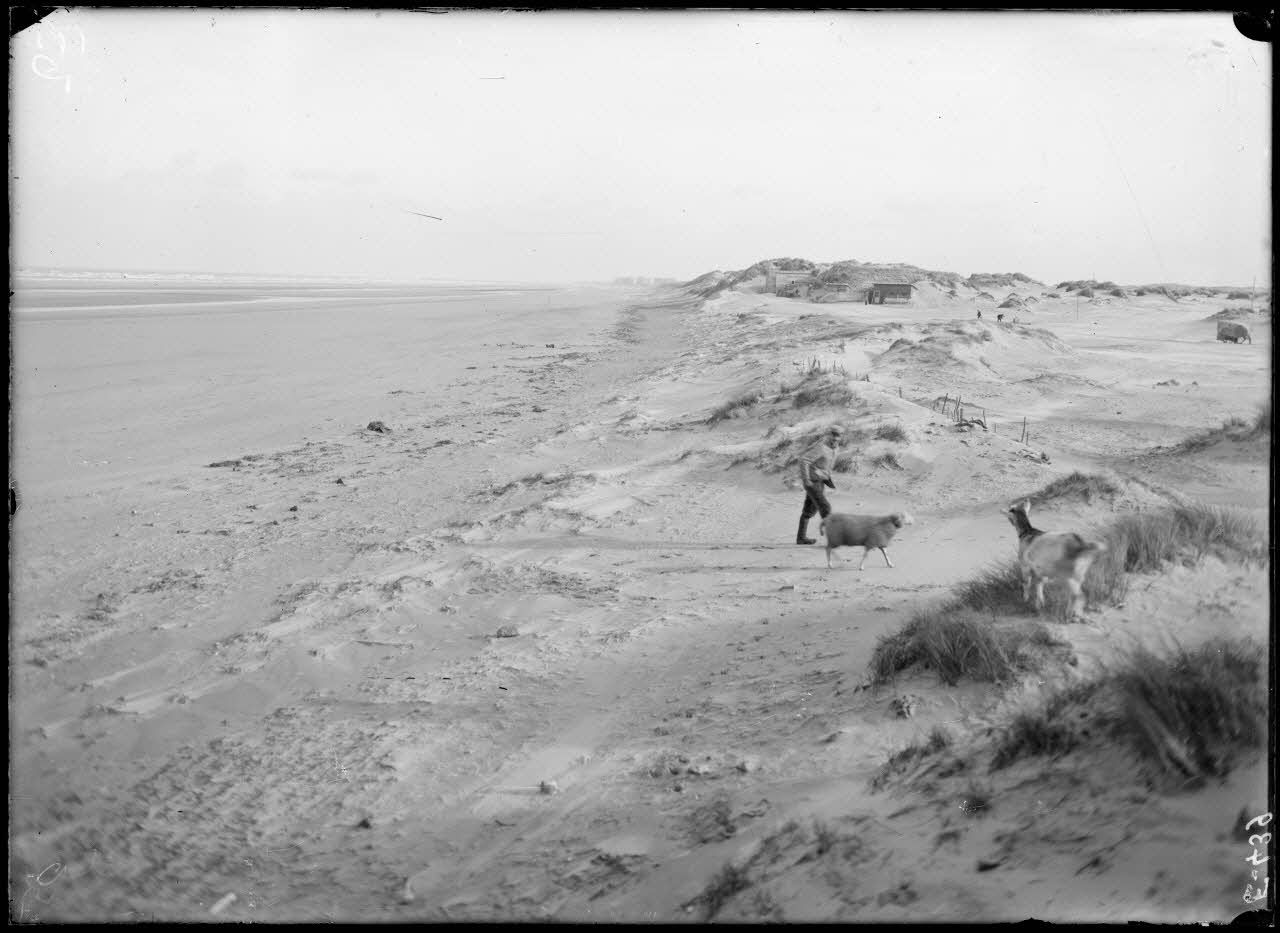 Ouest-Dunkerque-Bains. La plage et les dunes. Au fond, Nieuport-Bains. [légende d'origine]