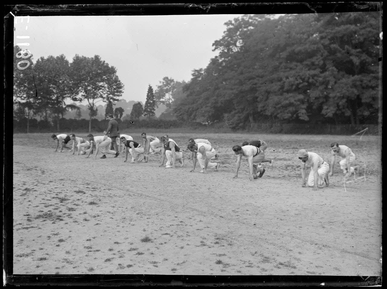 Joinville-le-Pont (Seine). Ecole normale militaire de gymnastique. Départ avant les sauts d'obstacles. [légende d'origine]