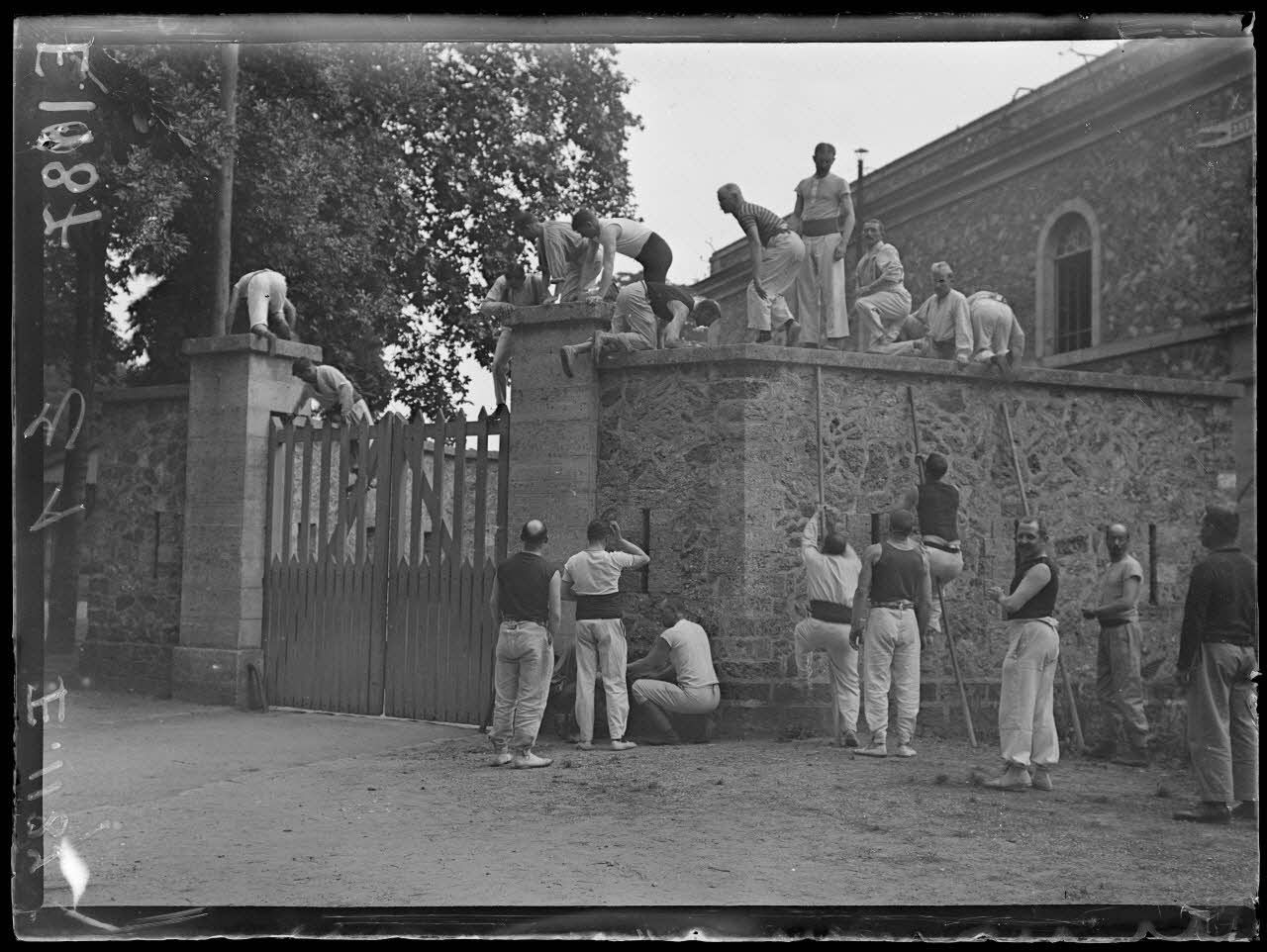 Joinville-le-Pont (Seine). Ecole normale militaire de gymnastique. L'escalade d'un mur.