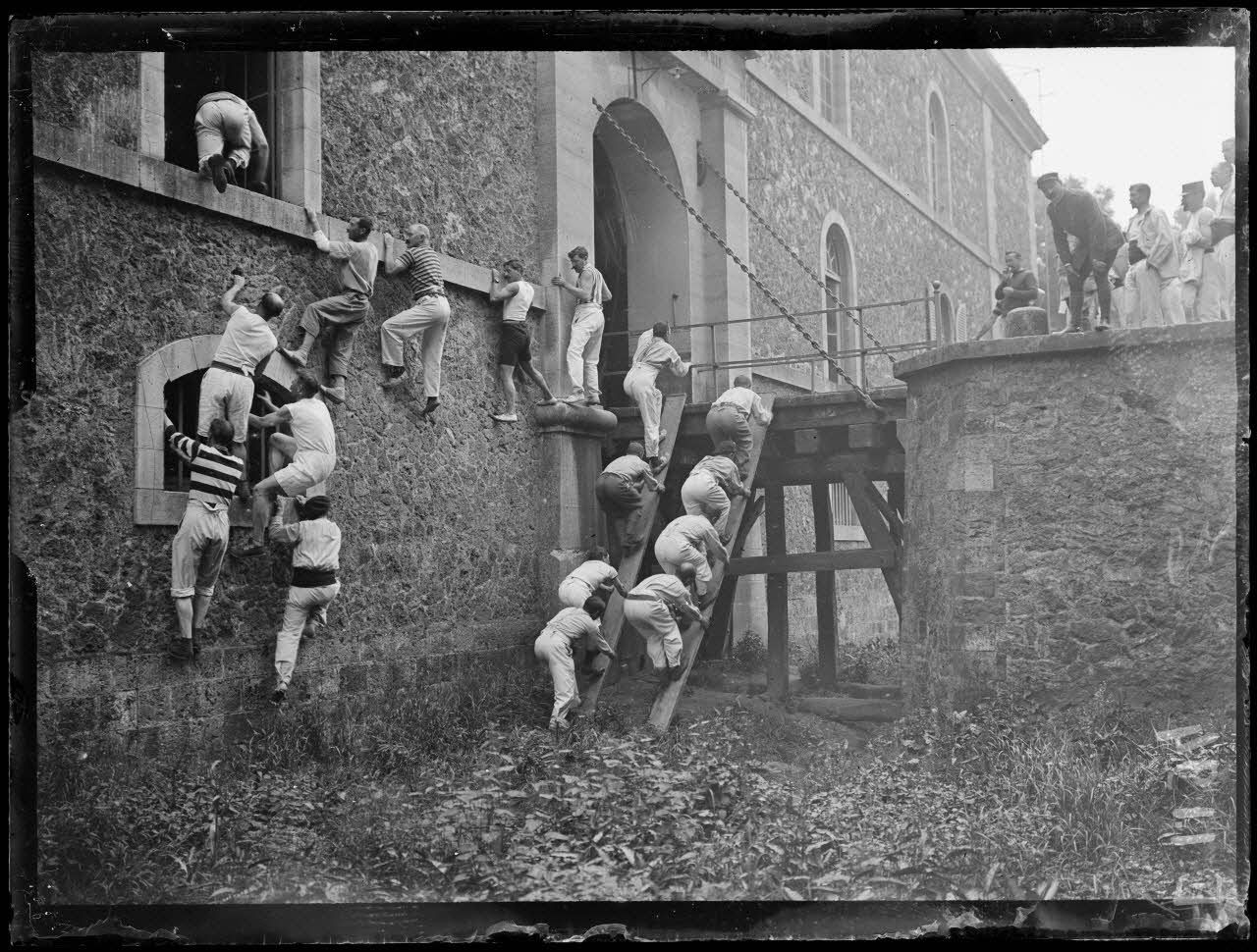 Joinville-le-Pont (Seine). Ecole normale militaire de gymnastique. L'escalade. [légende d'origine]
