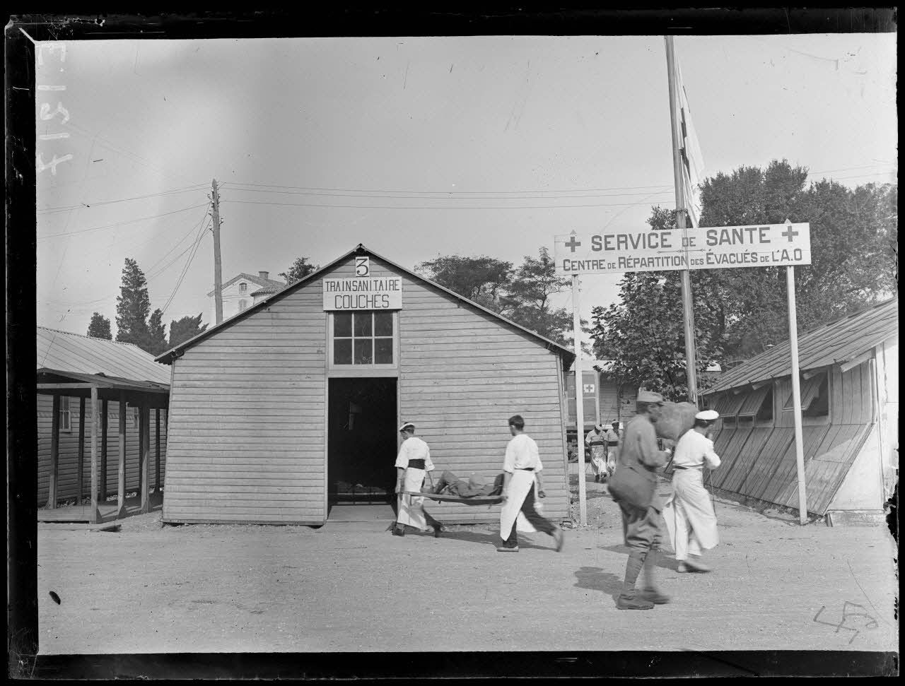 Arrivée de malades et de blessés à Toulon et transfert vers les hôpitaux.