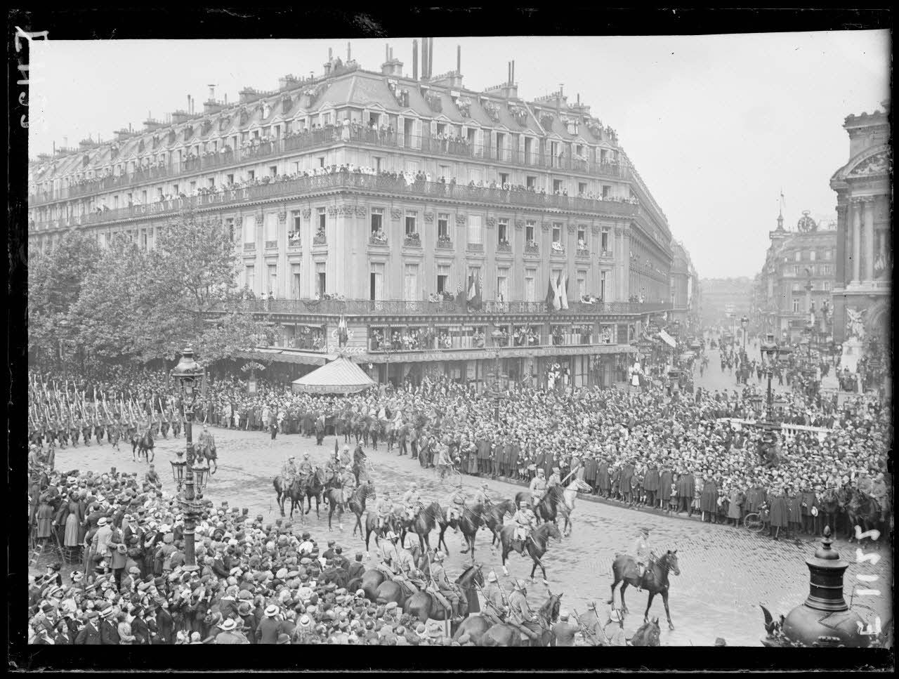 Paris, 14 juillet 1916. Défilé place de l'Opéra. [légende d'origine]