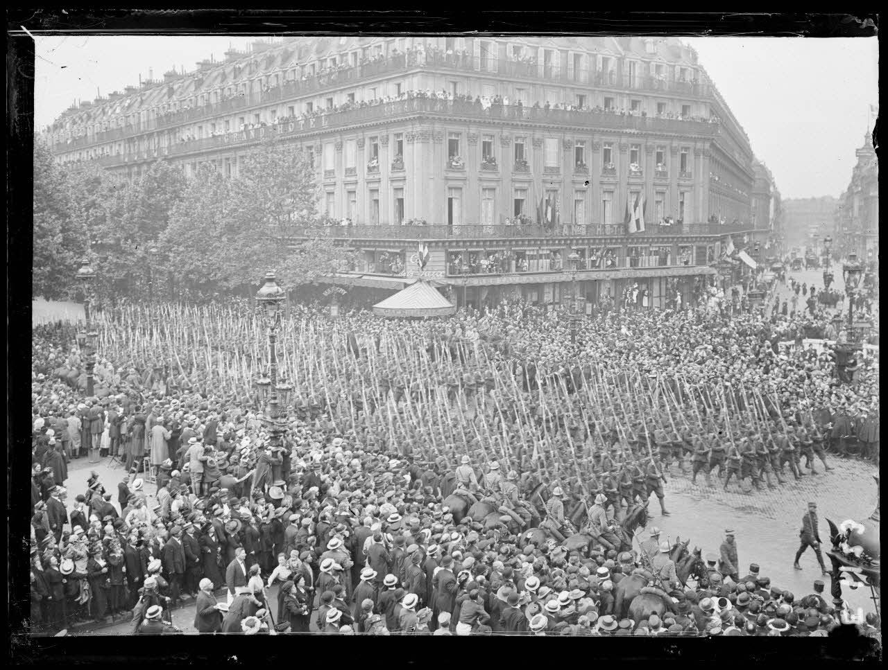 Paris, 14 juillet 1916. Défilé place de l'Opéra. [légende d'origine]