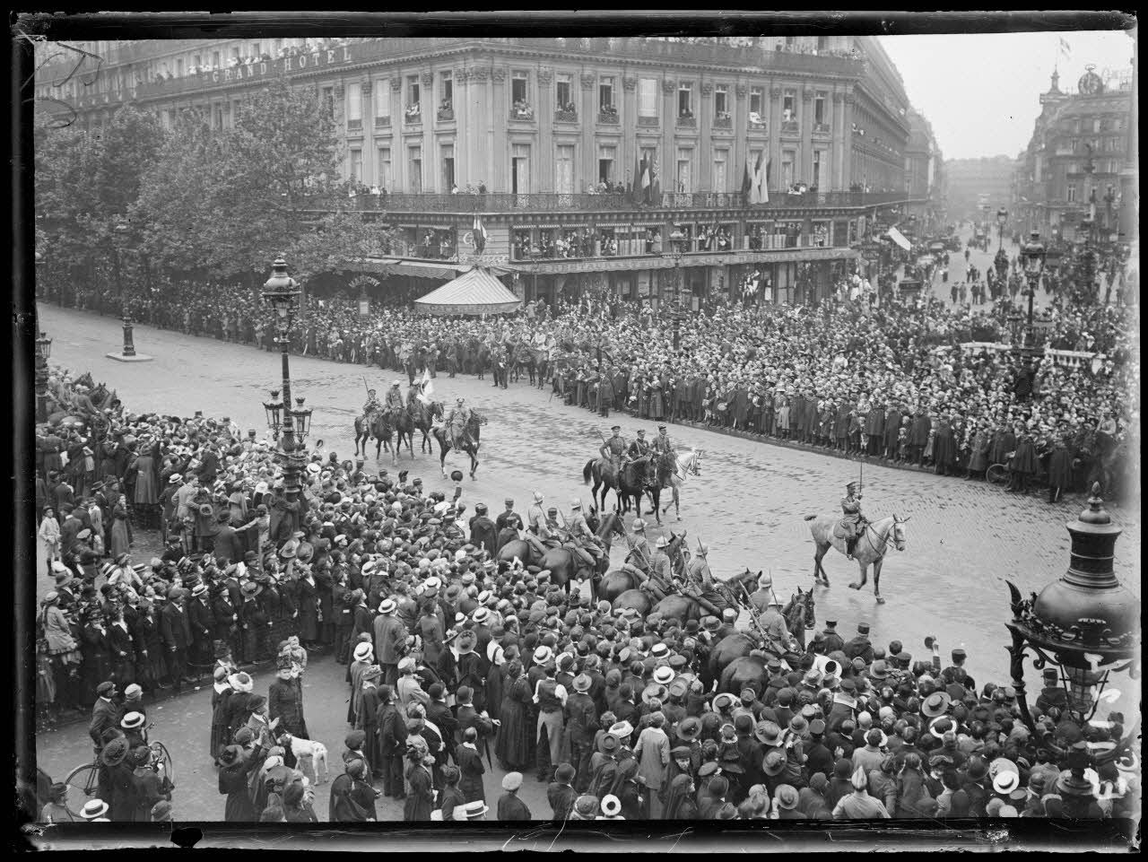 Paris, 14 juillet 1916. Défilé place de l'Opéra. [légende d'origine]