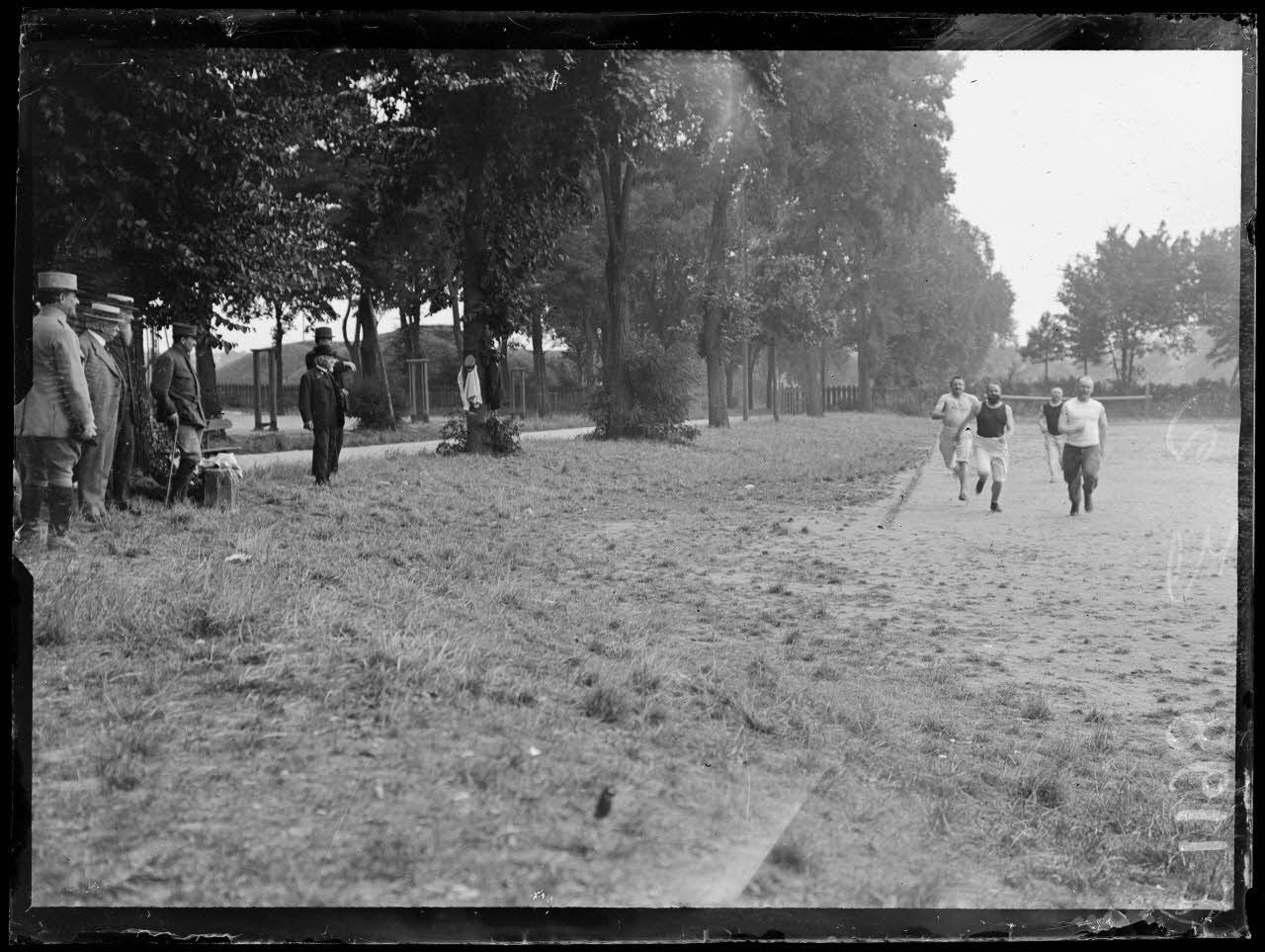 Joinville-le-Pont (Seine). Ecole normale militaire de gymnastique. Course à pied de 4 poids lourds. [légende d'origine]