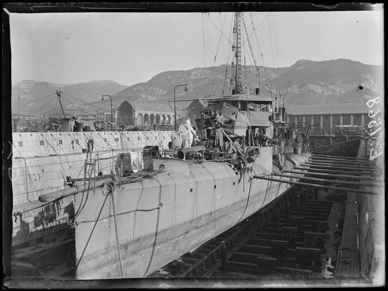 Toulon. Contre-torpilleur "Massue" en réparation venant de Salonique. [légende d'origine]