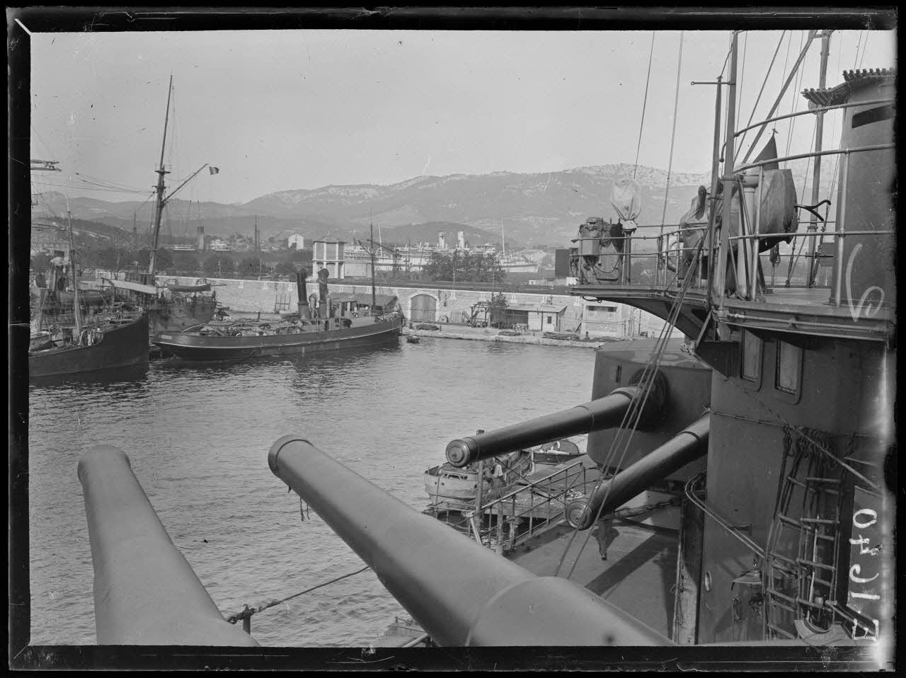 Toulon. A bord du Condorcet. Les pièces de 305.