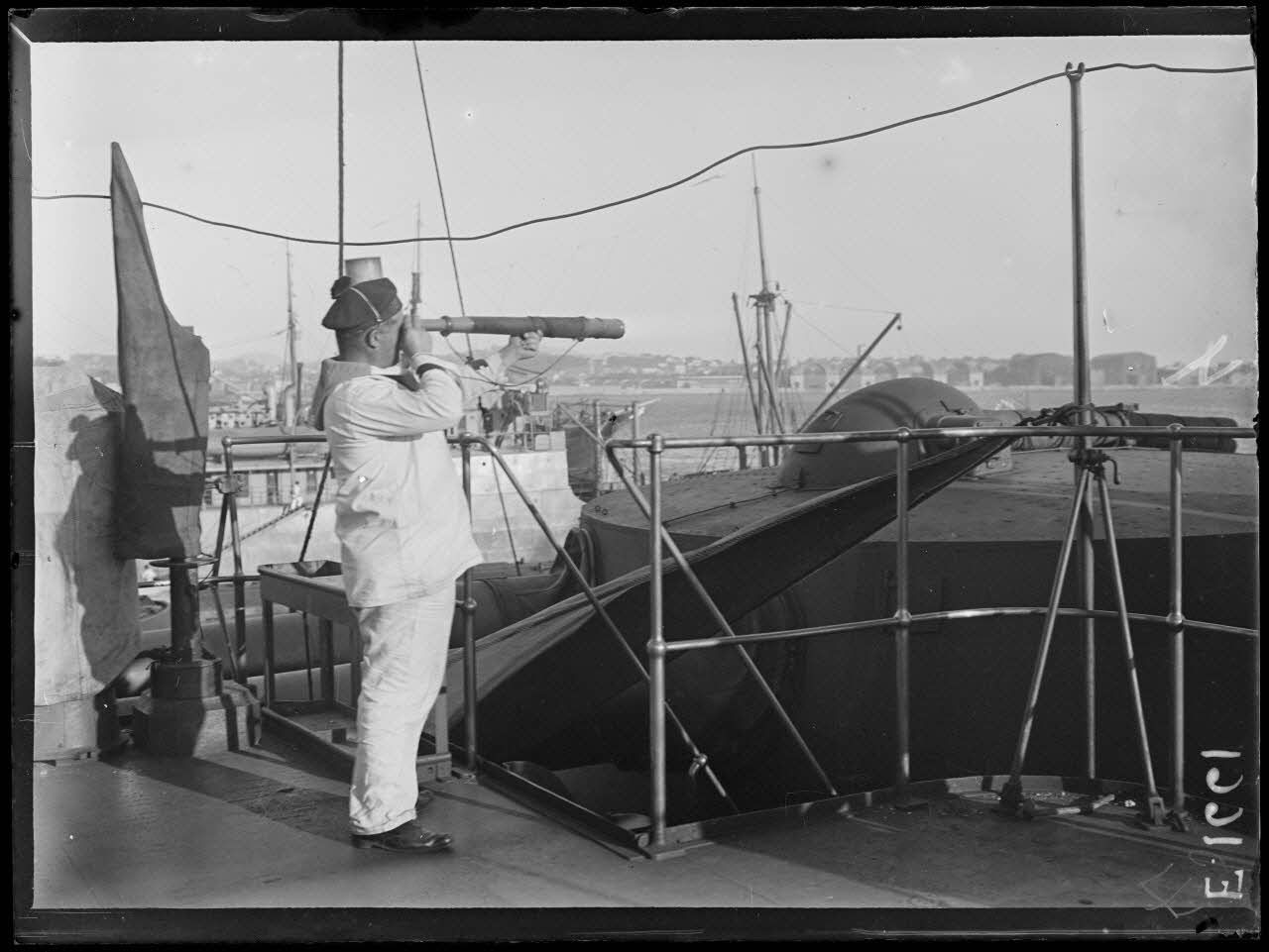 Port de Toulon. A bord du Condorcet. Timonier de veille. [légende d'origine]
