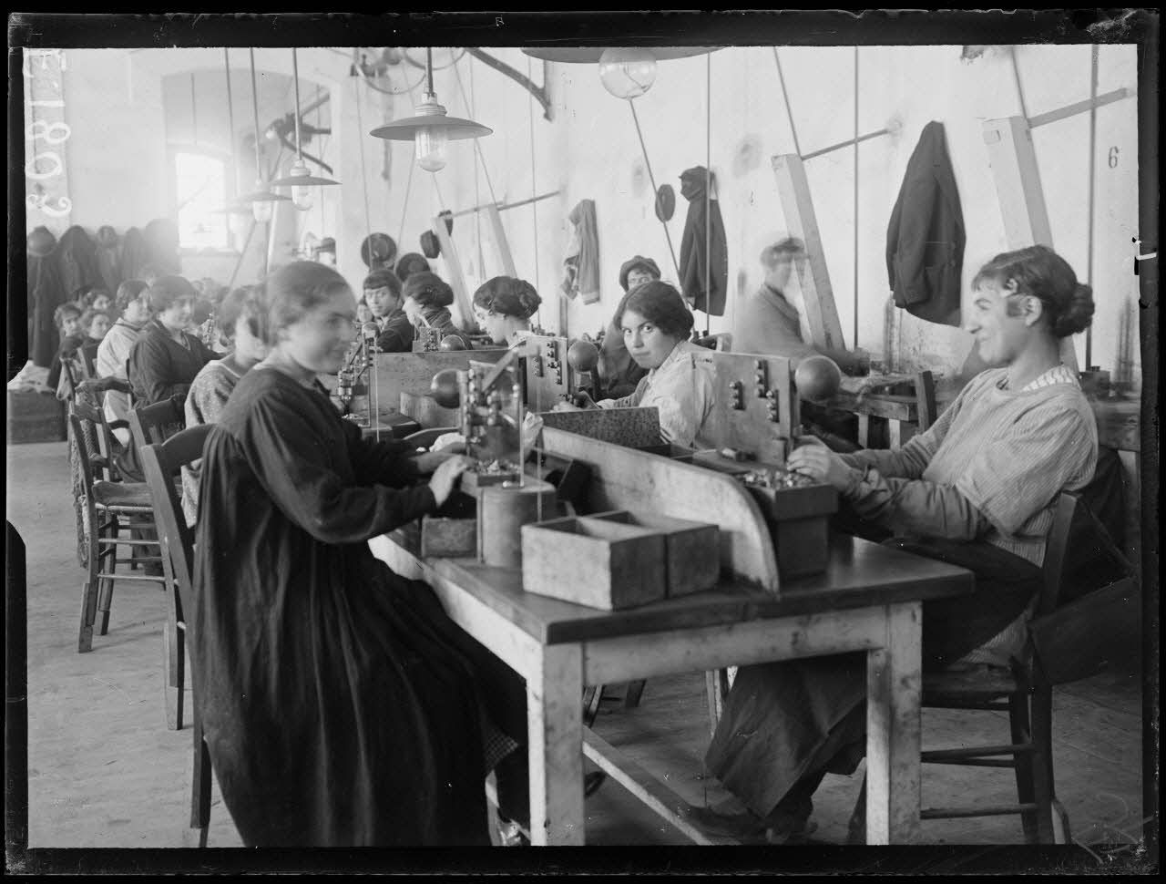 La seconde partie du reportage porte sur l'arsenal et la pyrotechnie. Dans l’arsenal, le personnel ouvrier travaille à la modification de pièces de moyen calibre et de leurs mécanismes de visée pour les adapter au tir de DCA ou au tir contre les sous-marins. Certaines pièces de gros calibres sont débarquées et entreposées, probablement pour servir ultérieurement à terre, sur voie ferrée (ALVF). Des ébauches d’obus arrivent d’aciéries en province pour être usinées et transformées. A la pyrotechnie, un grand nombre de clichés décrit les étapes de la fabrication des fusées détonateurs percutantes de type 24/31, depuis l’arrivée des barres de laiton constituant la matière première jusqu’à la pièce terminée, dont un exemplaire est visible sur le bureau du directeur de l’artillerie navale, l’ingénieur général de l’armement Lancret. De nombreuses ouvrières effectuent des travaux de précision sur les petites pièces constituant ces fusées. L’explosif de ces détonateurs, du fulminate de mercure, est également fabriqué sur place dans des ateliers en plein air, ainsi que les caisses d’emballage dans une menuiserie dédiée.