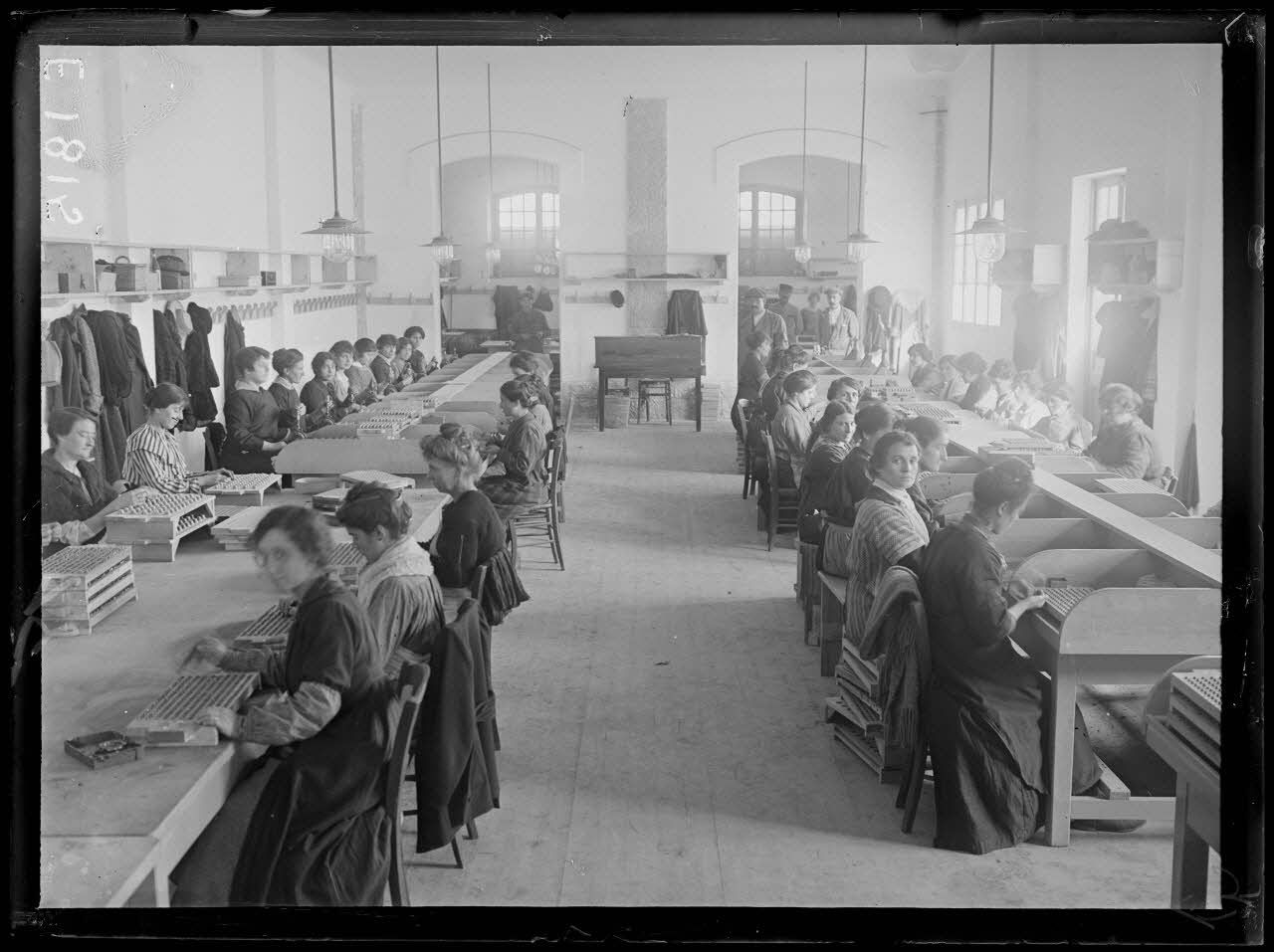 La seconde partie du reportage porte sur l'arsenal et la pyrotechnie. Dans l’arsenal, le personnel ouvrier travaille à la modification de pièces de moyen calibre et de leurs mécanismes de visée pour les adapter au tir de DCA ou au tir contre les sous-marins. Certaines pièces de gros calibres sont débarquées et entreposées, probablement pour servir ultérieurement à terre, sur voie ferrée (ALVF). Des ébauches d’obus arrivent d’aciéries en province pour être usinées et transformées. A la pyrotechnie, un grand nombre de clichés décrit les étapes de la fabrication des fusées détonateurs percutantes de type 24/31, depuis l’arrivée des barres de laiton constituant la matière première jusqu’à la pièce terminée, dont un exemplaire est visible sur le bureau du directeur de l’artillerie navale, l’ingénieur général de l’armement Lancret. De nombreuses ouvrières effectuent des travaux de précision sur les petites pièces constituant ces fusées. L’explosif de ces détonateurs, du fulminate de mercure, est également fabriqué sur place dans des ateliers en plein air, ainsi que les caisses d’emballage dans une menuiserie dédiée.