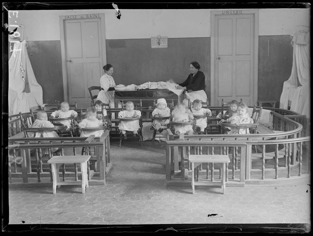 Pyrotechnie de Toulon. Pouponnière à laquelle chaque mère de famille travaillant à la pyrotechnie peut apporter son enfant soigné par la direction. [légende d'origine]