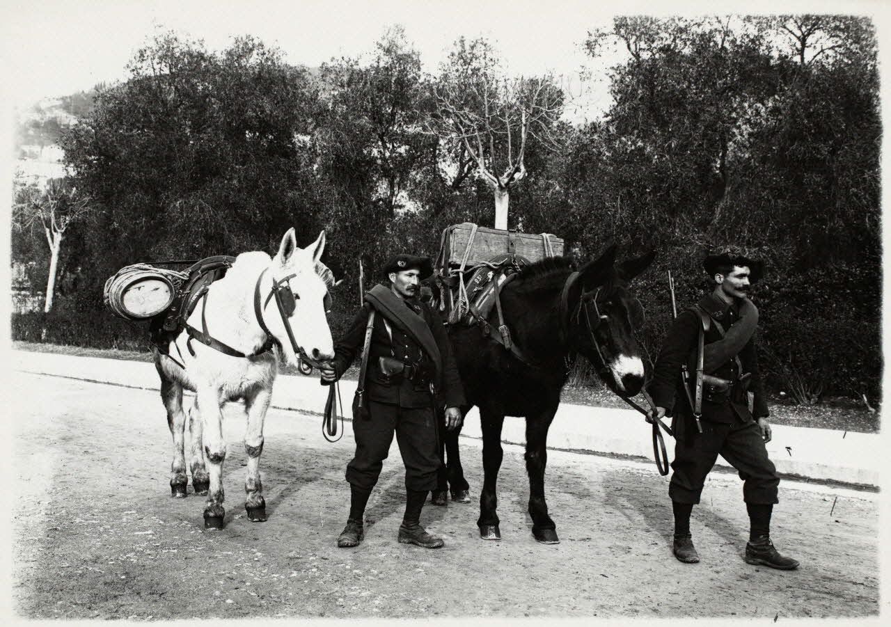 Chasseur - Un groupe de soldats du 27e BCP avec leurs mulets.