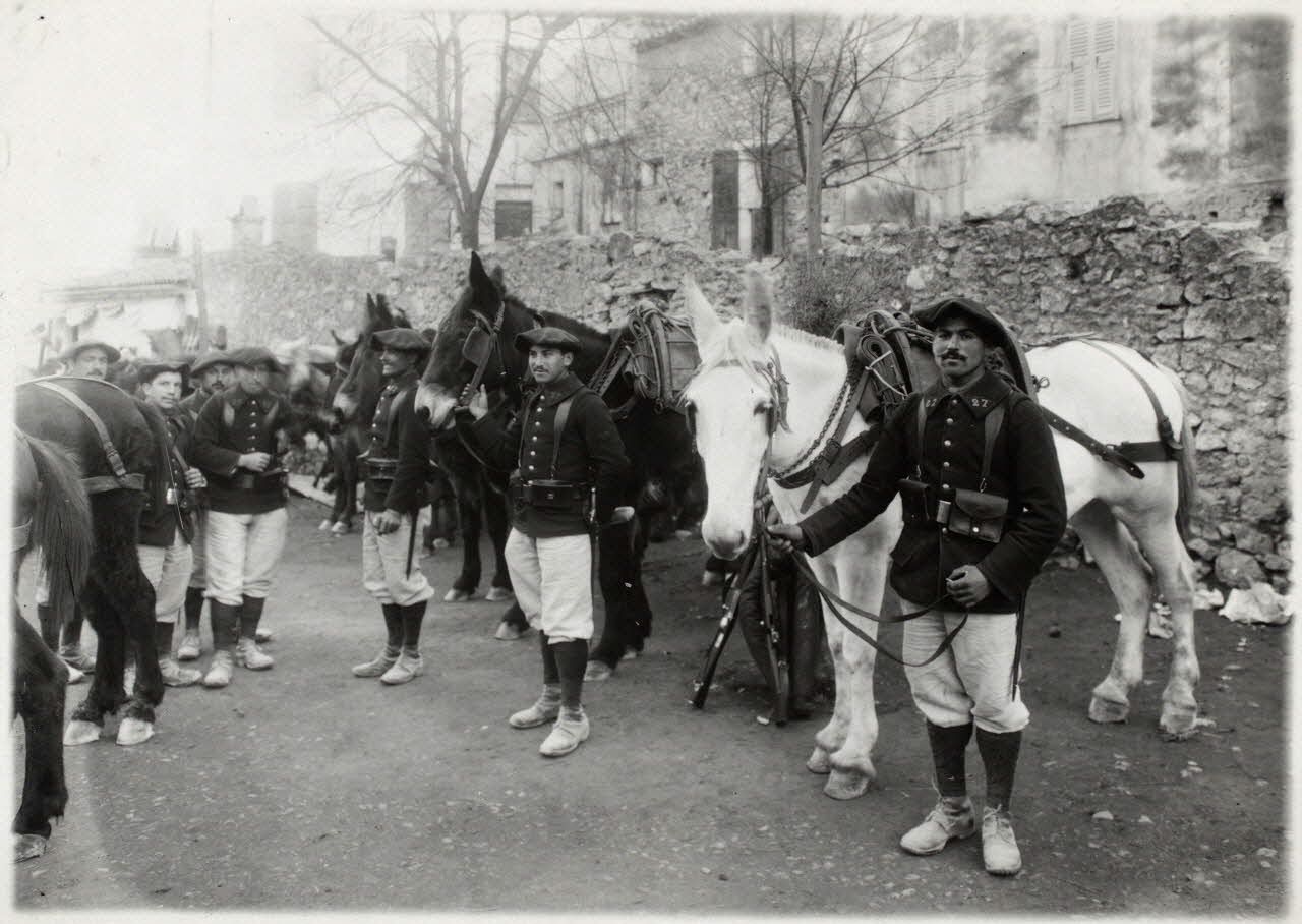 Chasseur - Un groupe de soldats du 27e BCP avec leurs mulets. [légende d'origine]