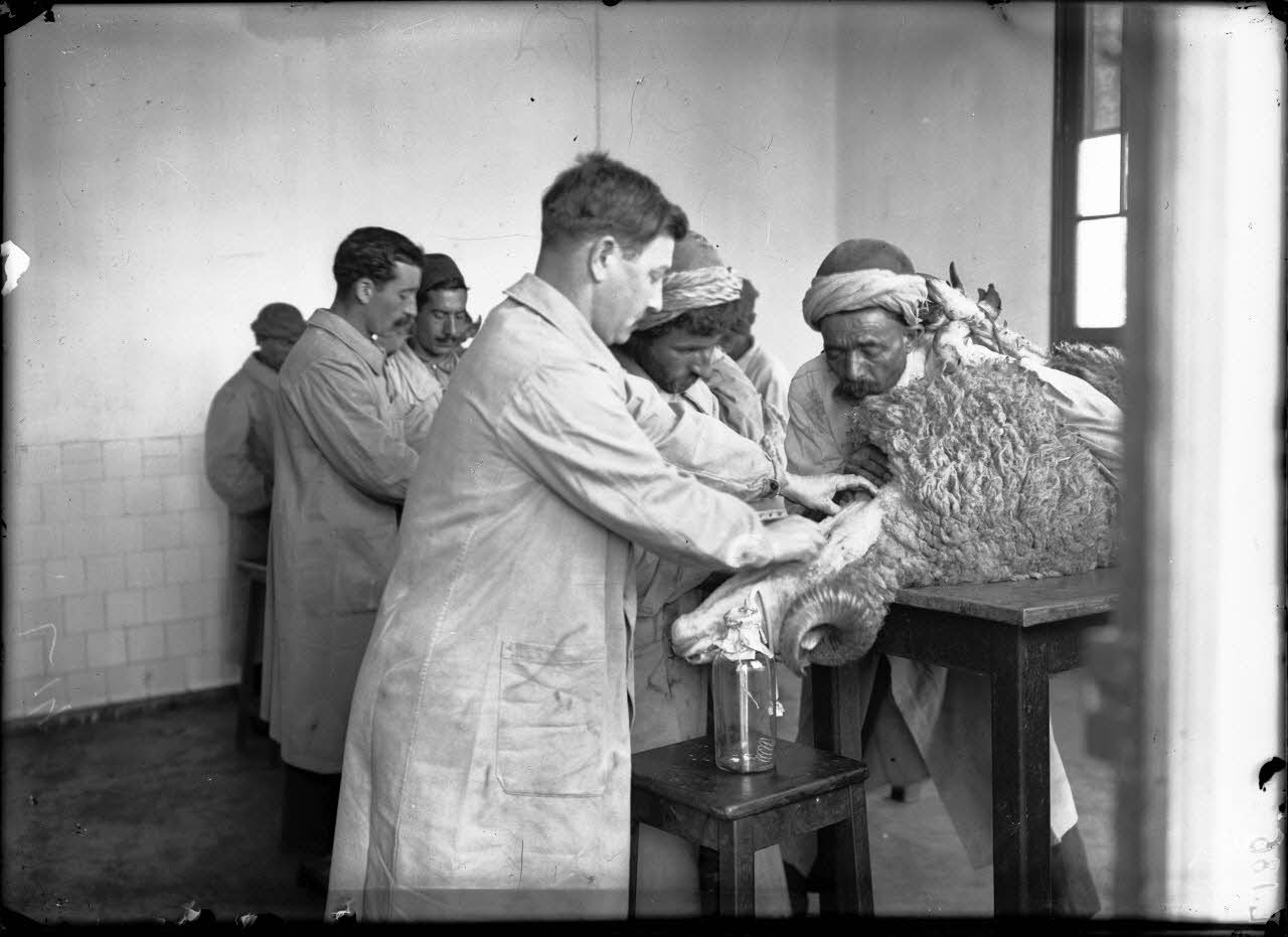 Institut Pasteur d'Alger. Saignée du mouton pour la production du sérum. [légende d'origine]