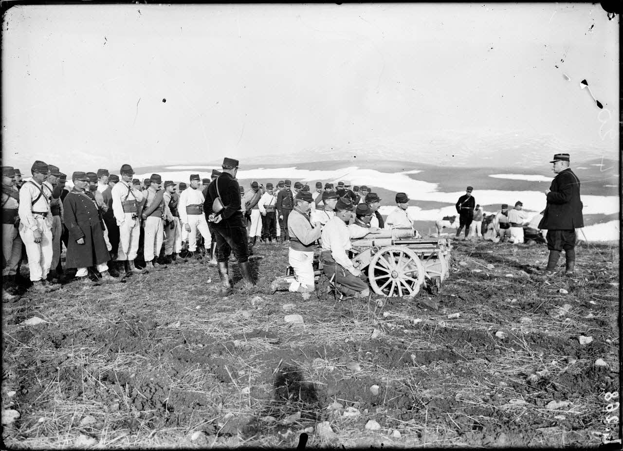 - l'école de tir d'artillerie de montagne à Sétif : le 3e régiment de Zouaves (3e RZ) sur le terrain de manœuvres s'entraînant sur des canons de 65 mm M 1906 ;