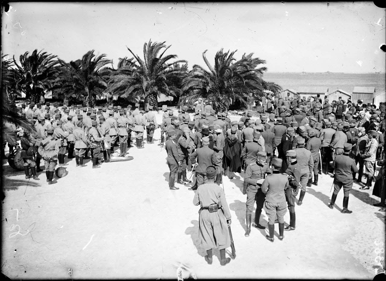 - les troupes serbes stationnées à Bizerte participent à une prise d'armes à l'occasion d'une remise de décorations par l'amiral Guépratte ;