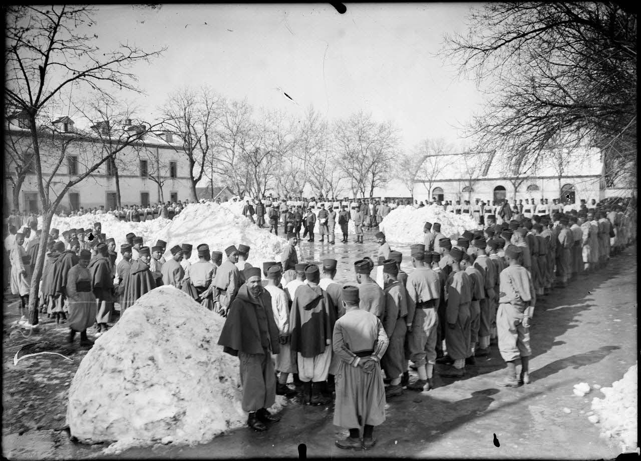 - un détachement du 1er RTA dans le quartier Camus à Médéa, sous la neige : le rassemblement pour le rapport, l'inspection du régiment par le général de Fontenailla, des soldats à cheval venant de Blida ;