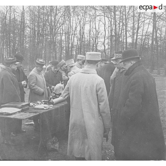 Participation de Jules-Louis Breton à une session d'expérimentation de projectiles.