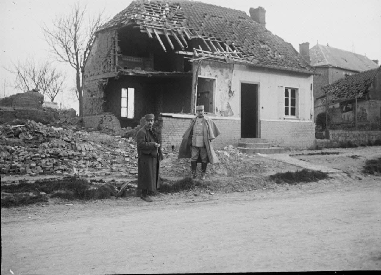 Archives photographiques de Jules-Louis Breton (1872-1940). Boîte de plaques de verre "Général Delamotte, Dury, 23 avril 1915. Bouchoir (ruines) (Gervain-Lehérissé), 22 avril 1915".
