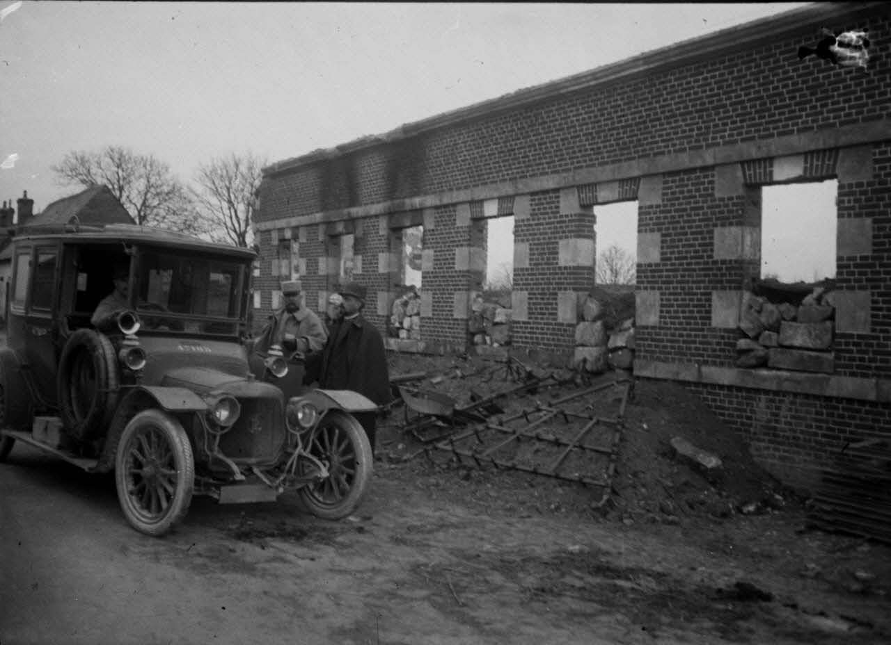 Archives photographiques de Jules-Louis Breton (1872-1940). Boîte de plaques de verre "Général Delamotte, Dury, 23 avril 1915. Bouchoir (ruines) (Gervain-Lehérissé), 22 avril 1915".