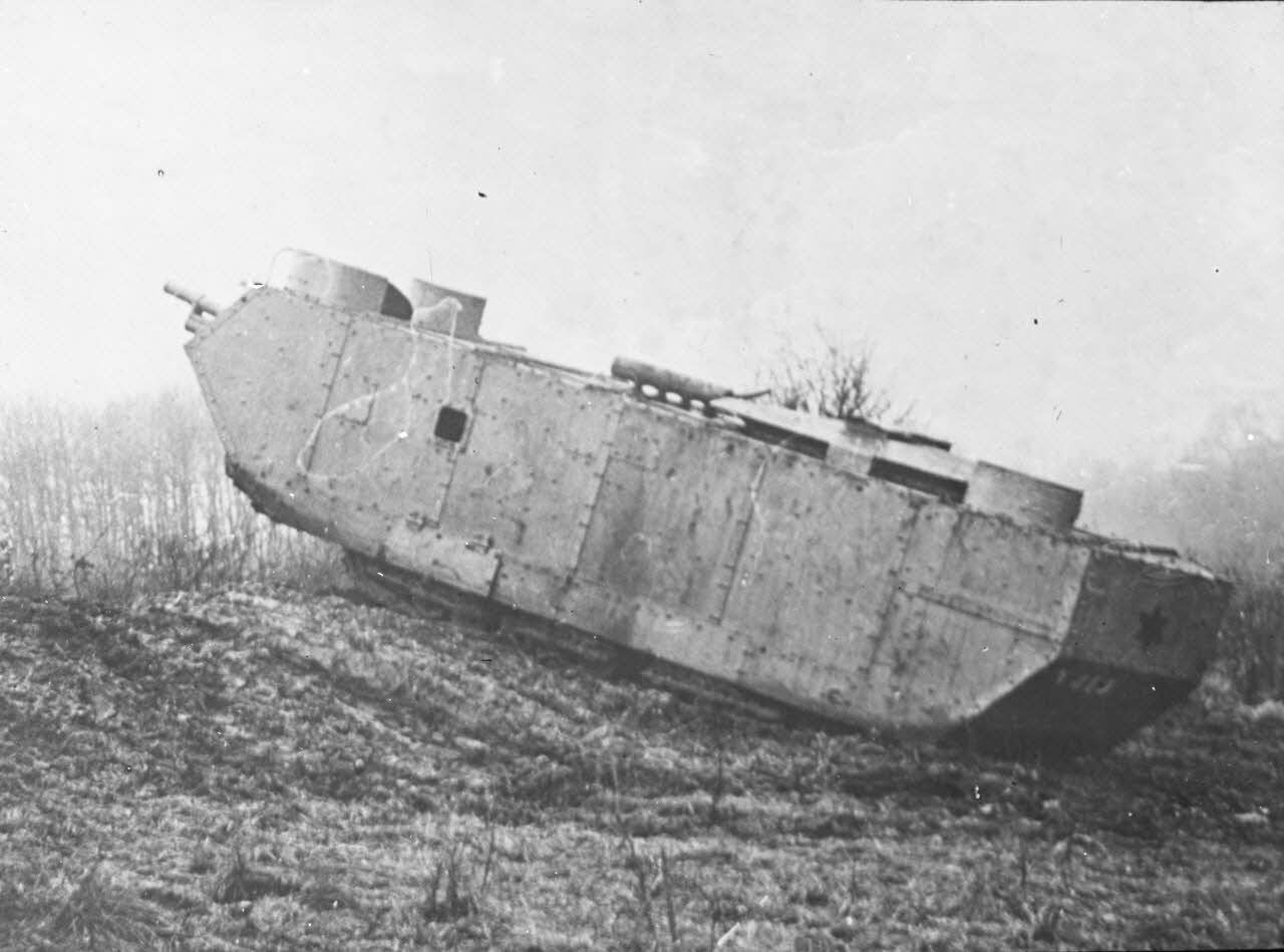 Boîte de plaques de verre compilant différents modèles de chars en expérimentation ou en exercice au cours de la Première Guerre mondiale. On y retrouve pêle-mêle le char allemand de type A7V ainsi qu'un Mark V des forces britanniques, des chars Saint-Chamond et Schneider ainsi que des essais de franchissement d'un tracteur caterpillar. Plusieurs images sont présentes dans d'autres reportages du fonds Jules-Louis Breton.