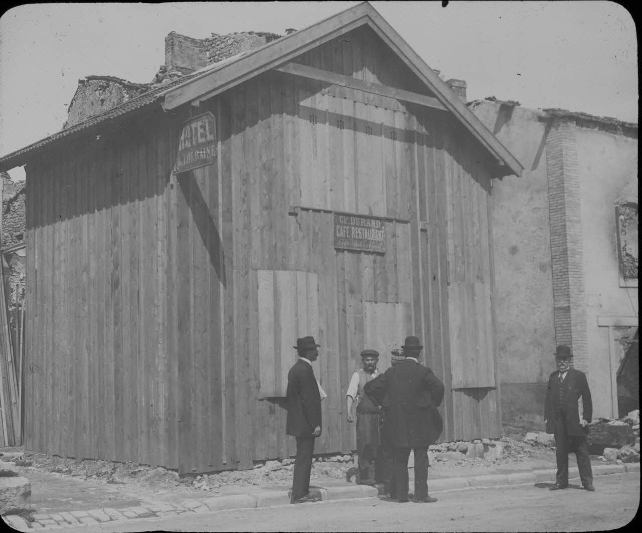 [Officiels discutant avec un homme devant l'hôtel de Lorraine, s.d.]