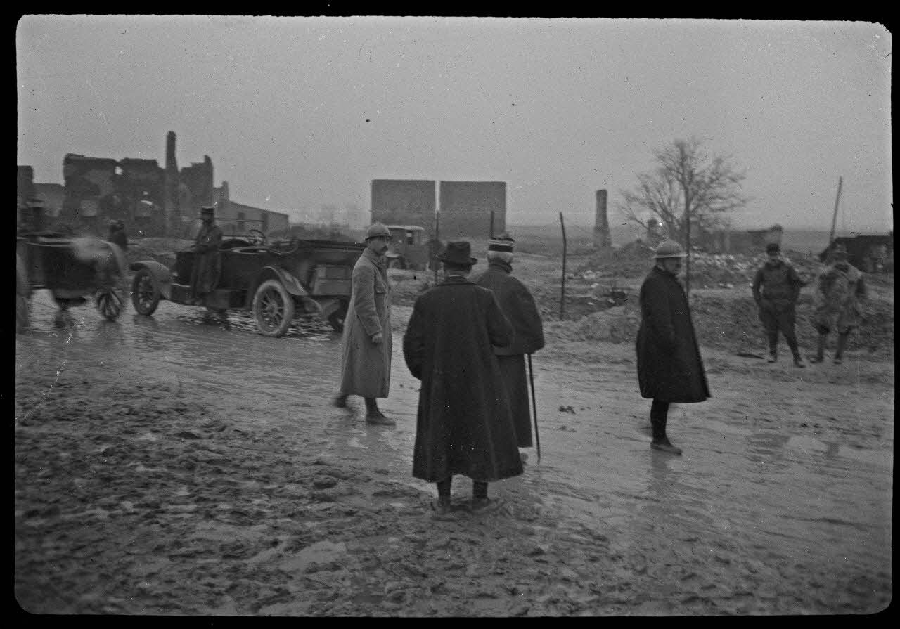 Voitures d'un groupe d'autorités en visite à la ferme des Wacques au sud-ouest de Souain.