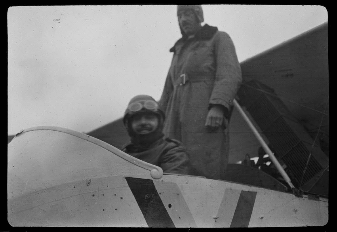 [Pilotes sur un avion Voisin type III, s.d.]