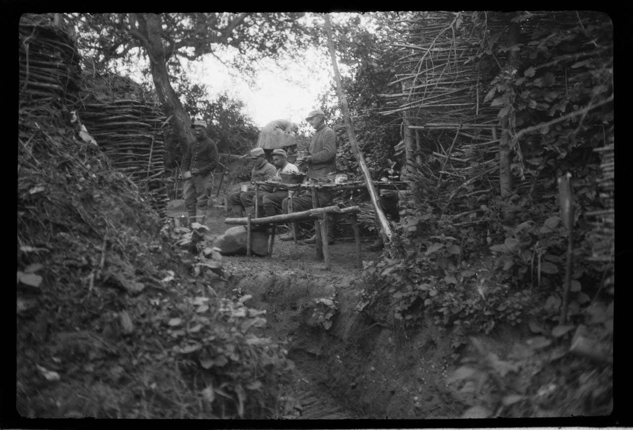 Vue d'espaces de repos et de restauration aménagés sur le front.