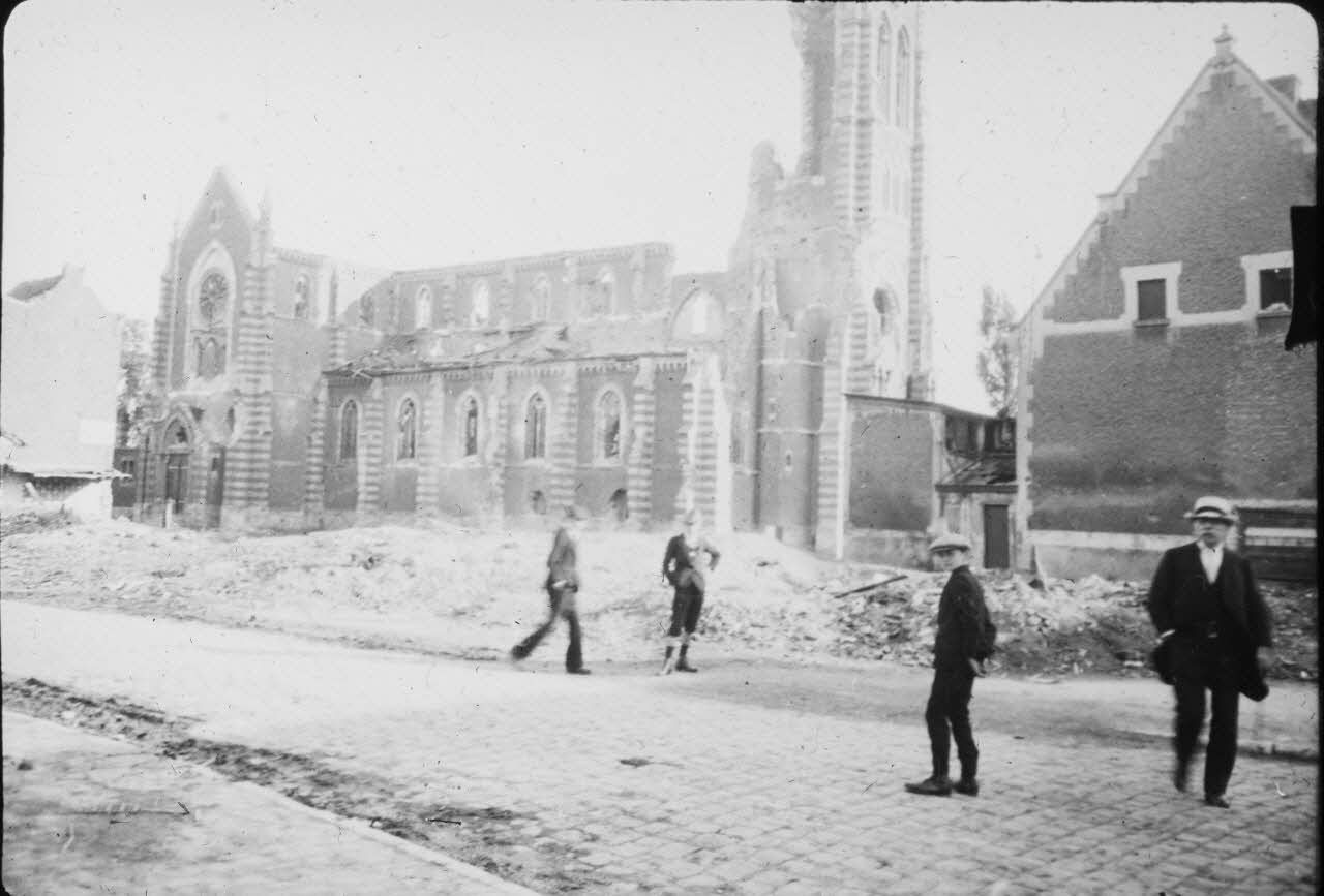 Contenant des positifs sur plaques de verre, la boîte constituée ici en reportage retrace pêle-mêle différents moments de visites dans les régions où se déroulent les combats : tirs d'artillerie, visite de Bouchoir ou encore au château de Dury et même plus loin avec la visite de la ville d'Ypres en Belgique, tous ces évènements témoignent du soucis des autorités de constater dans l'immédiateté les effets de la guerre et pourraient avoir été prises en 1915.
