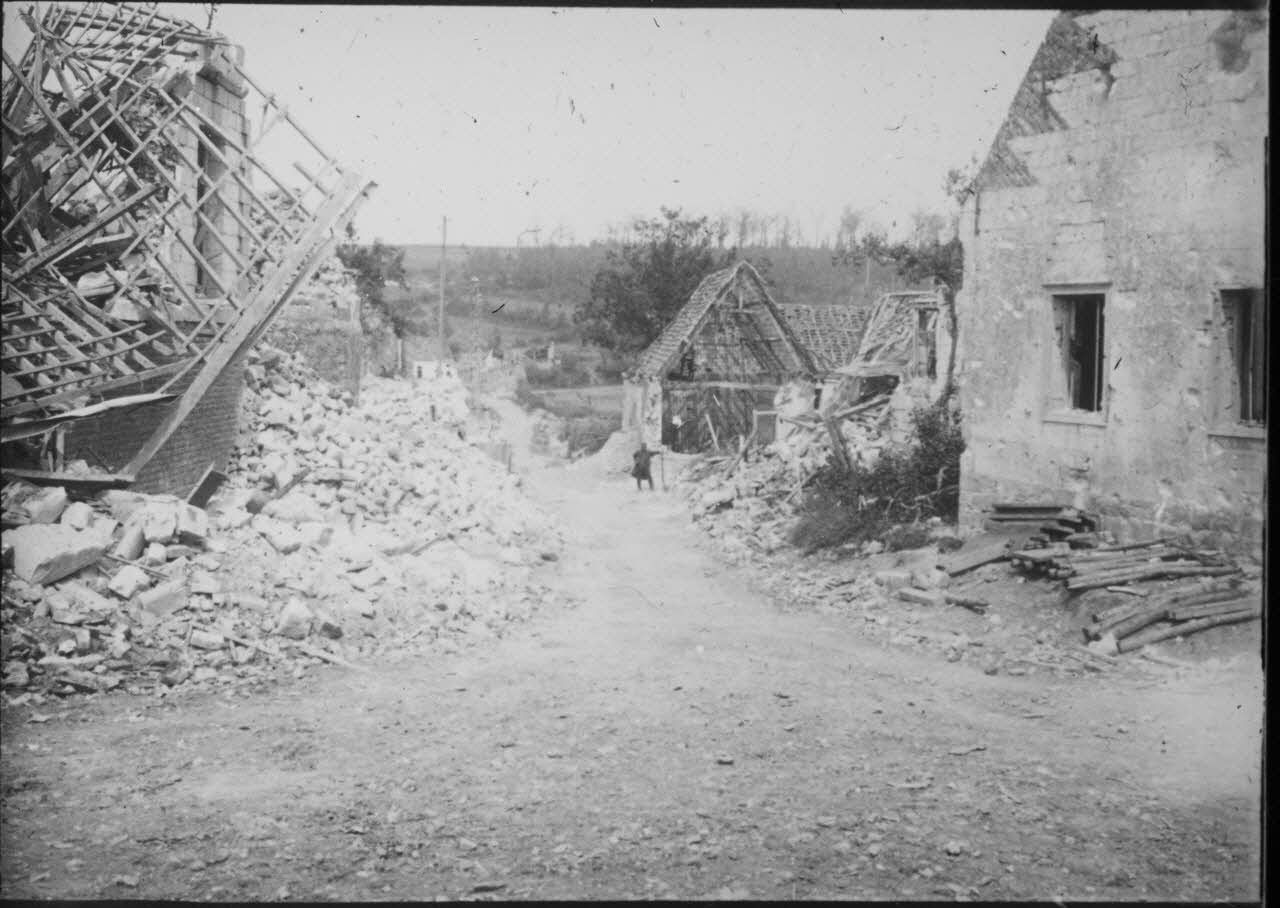 Contenant des positifs sur plaques de verre, la boîte constituée ici en reportage retrace pêle-mêle différents moments de visites dans les régions où se déroulent les combats : tirs d'artillerie, visite de Bouchoir ou encore au château de Dury et même plus loin avec la visite de la ville d'Ypres en Belgique, tous ces évènements témoignent du soucis des autorités de constater dans l'immédiateté les effets de la guerre et pourraient avoir été prises en 1915.