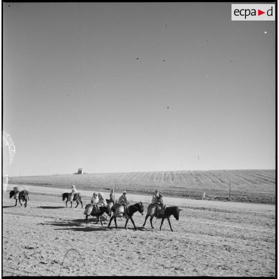 Habitation et vie quotidienne. Des ânes transportent du matériel.