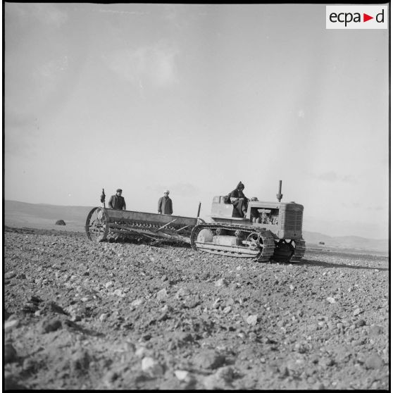 Fonds photographique de Arthur Smet (1932 - ). Convoi militaire, travail agricole dans les champs, assistance scolaire et médicale et aspects de la vie quotidienne des populations.