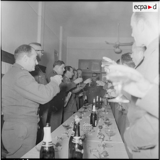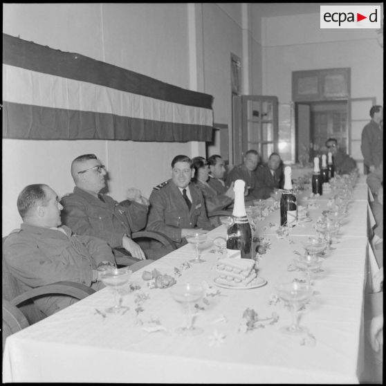 La table d'honneur présidée par le colonel Marguet. à l'occasion de l'inauguration du mess des sous-officiers de l'état-major.