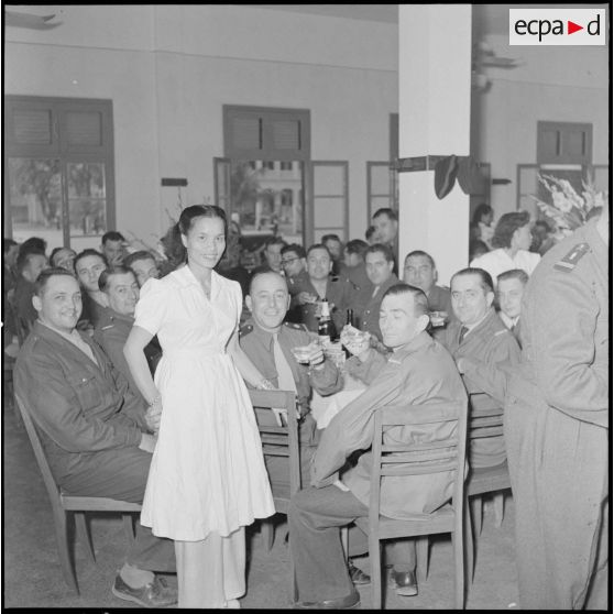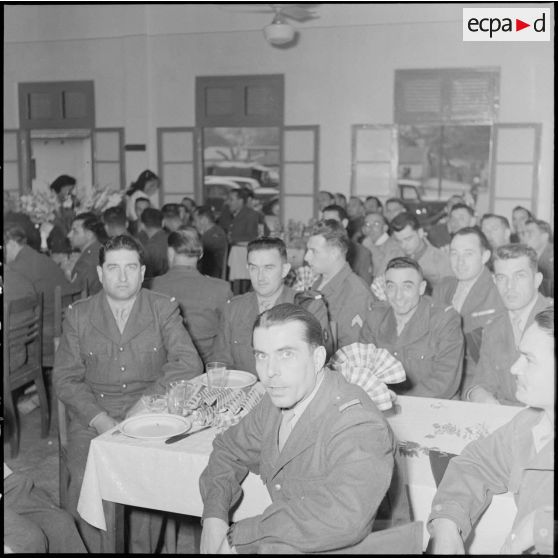Quelques sous-officiers de l'état-major lors du repas d'inauguration du mess des sous-officiers de l'état-major.