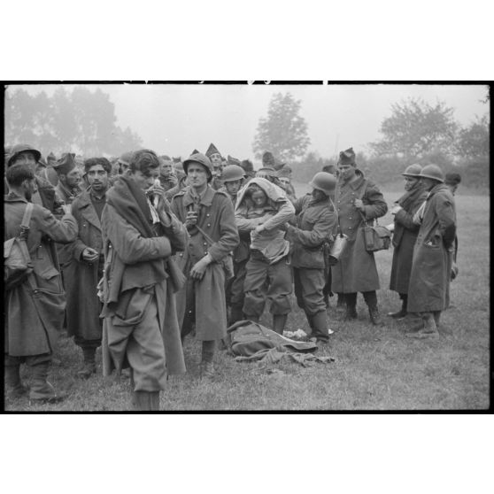 A Thulin, entre Mons et Valenciennes, un groupe de prisonniers français est rassemblé à l'extérieur de la ville, des blessés légers sont soignés.