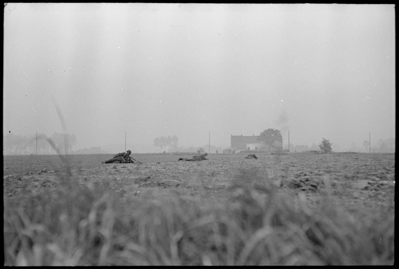 En Belgique, entre Mons et Valenciennes, les fantassins allemands du 469 I.R (Infanterie.Regiment) progressent vers Thulin.
