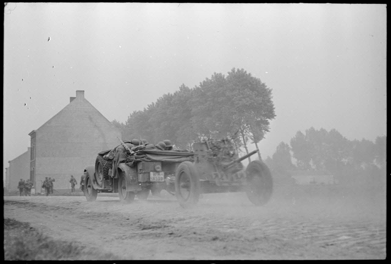 En Belgique, dans le village de Thulin, entre Mons et Valenciennes, les fantassins allemands du 469 I.R (Infanterie Regiment) vont mettre en batterie un canon antichar de 3,7 cm PaK 36/37.