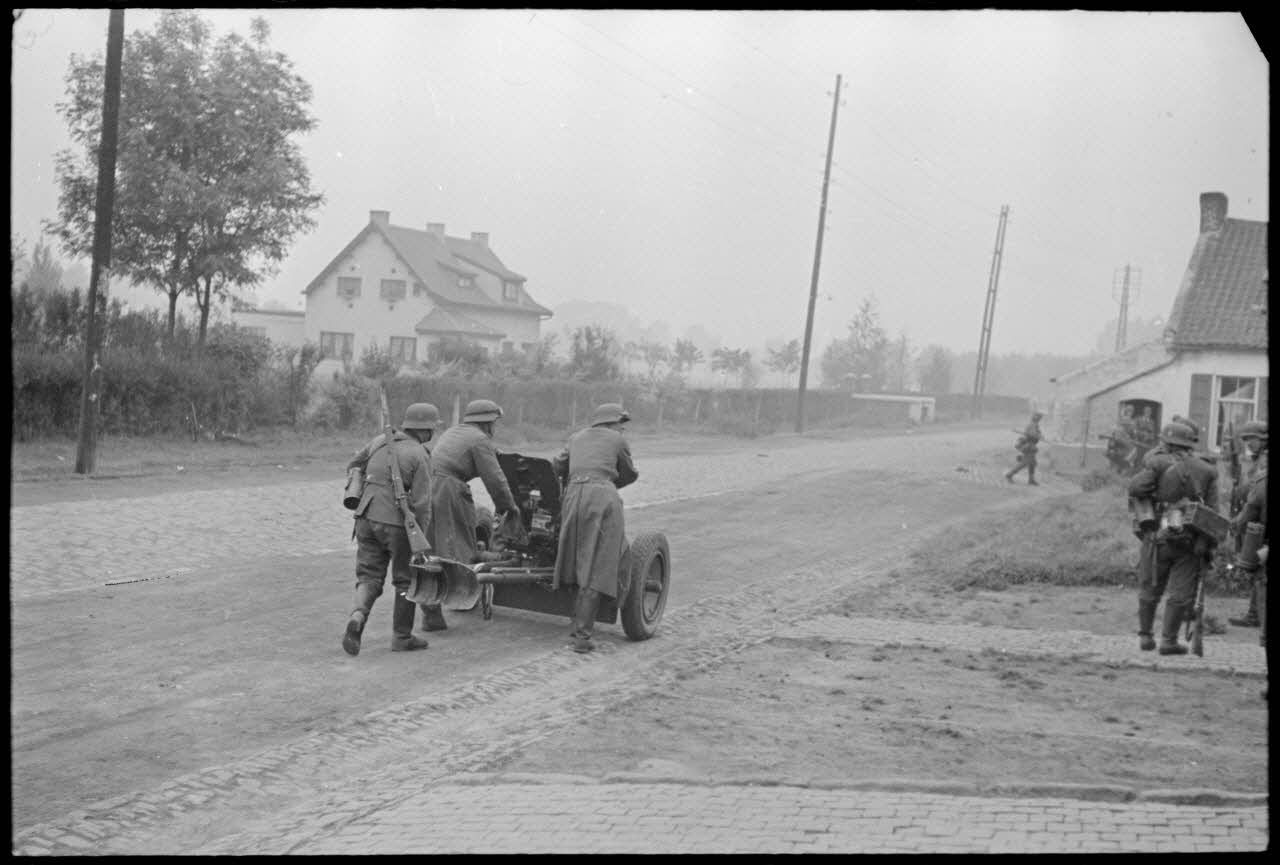 En Belgique, dans le village de Thulin, entre Mons et Valenciennes, les fantassins allemands du 469 I.R (Infanterie Regiment) vont mettre en batterie un canon antichar de 3,7 cm PaK 36/37.