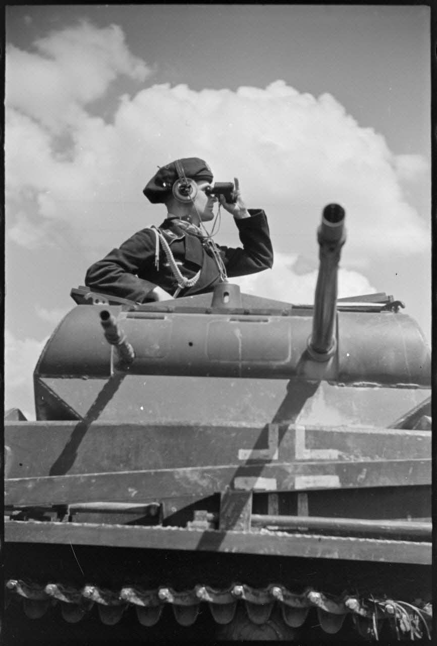Durant la bataille de Gembloux, un chef de char Panzer II de la 4e division blindée allemande (4.Panzer-Division).