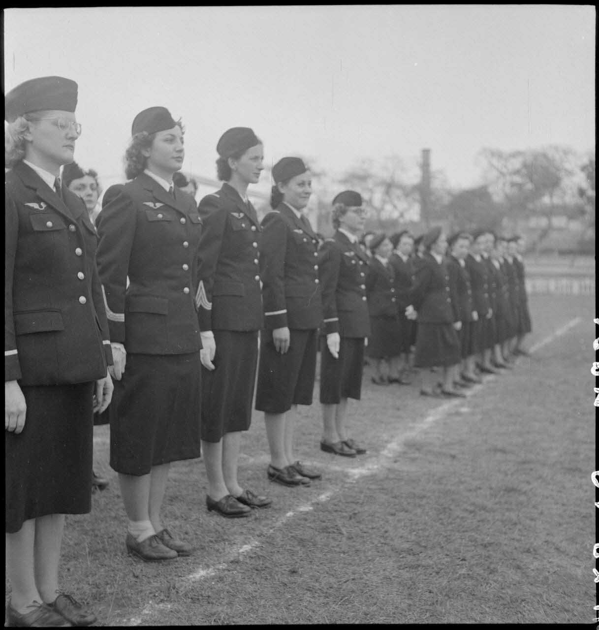 Personnel féminin de l'armée de l'Air lors de la prise d'armes du personnel féminin de l'armée de Terre au stade Mangin.